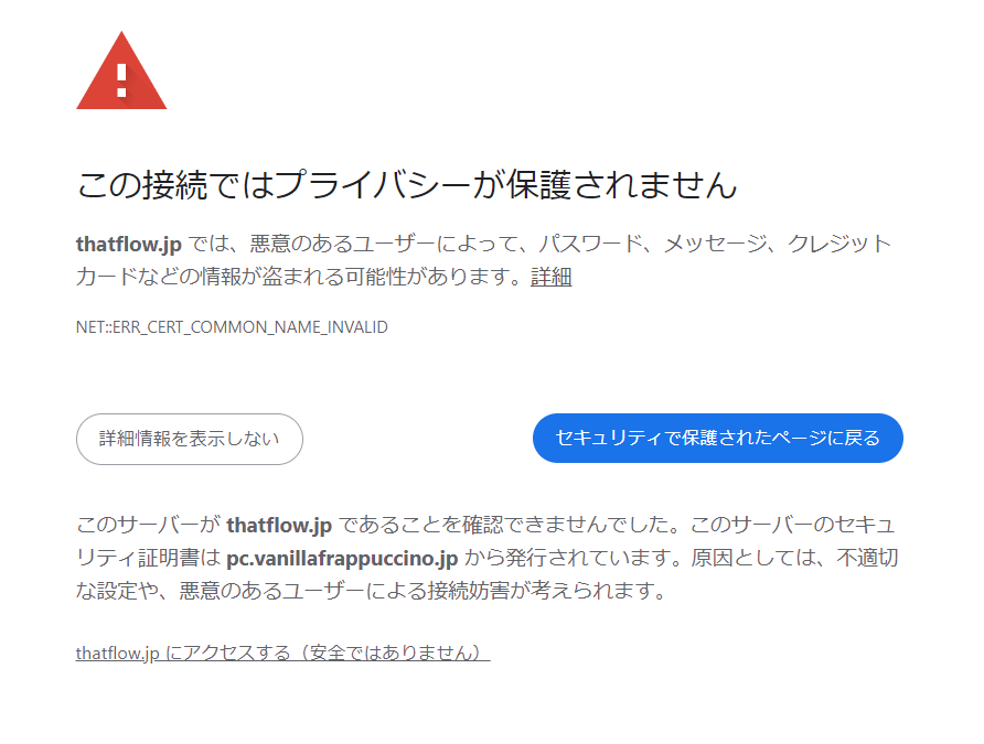 また、thatflowのURLへアクセスする際、こんな画面が表示されました。