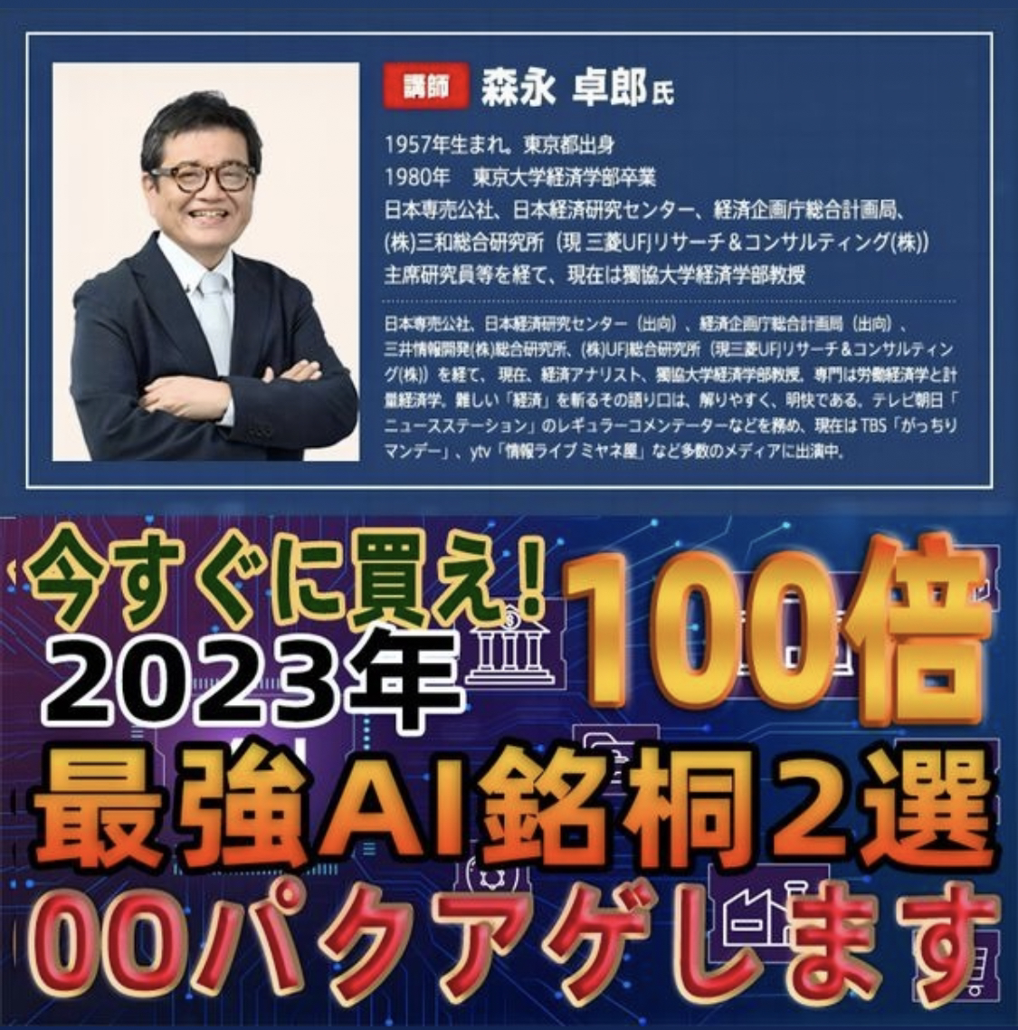 また、経済アナリストの森永卓郎氏の画像が無断で使用されている広告も確認されています。